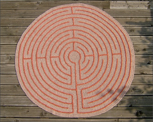 The walls of the maze were then worked in surface crochet, using a thick, textured,
