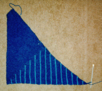 Along one edge of the square, pick up the number of stitches calculated. Knit straight at one side and decrease at the other end on alternate rows.